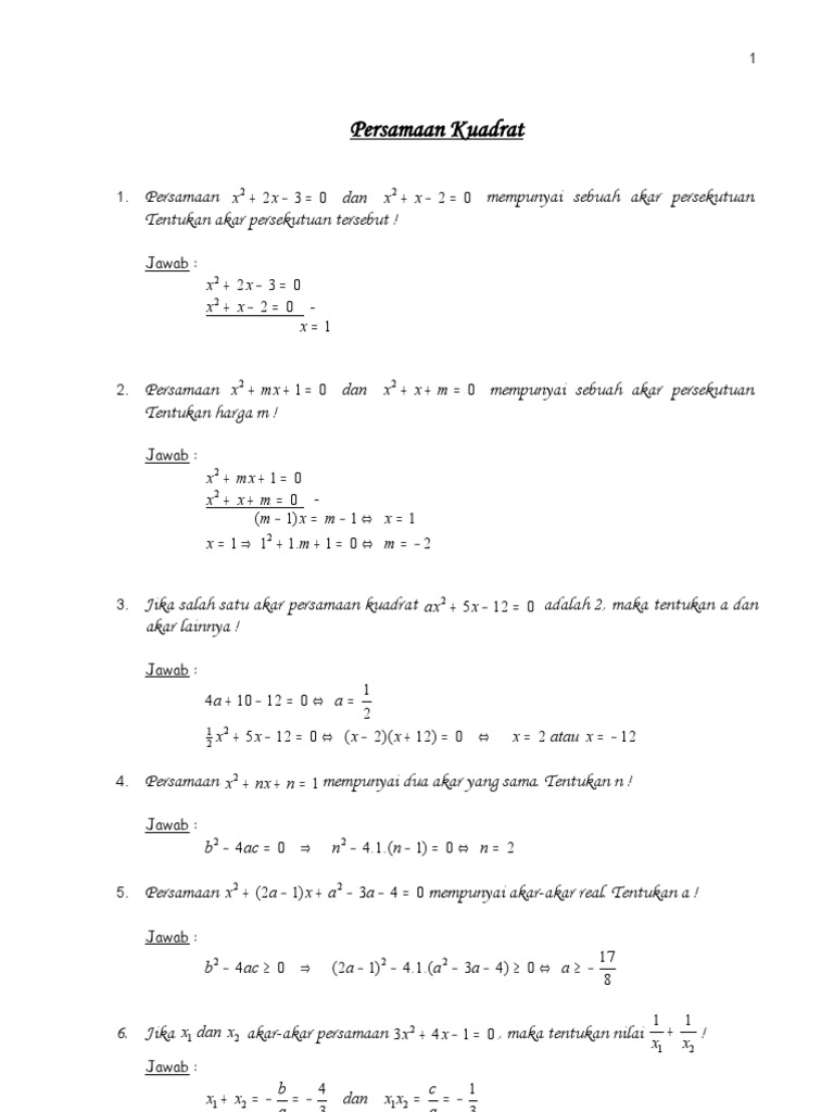 Contoh soal persamaan kuadrat dan pembahasan contoh soal 1. Jadi kalo kita lihat dari persamaan umum dari ax 2 bx c 0 maka pada bagian pangkat 2 itu adalah suku banyak. Persamaan kuadrat yang memuat a dan c saja akan mempunyai penyelesaian real jika c bernilai negatif. Suatu persamaan kuadrat baru juga dapat dibentuk walaupun tidak ada diketahui nilai dari akar akarnya.