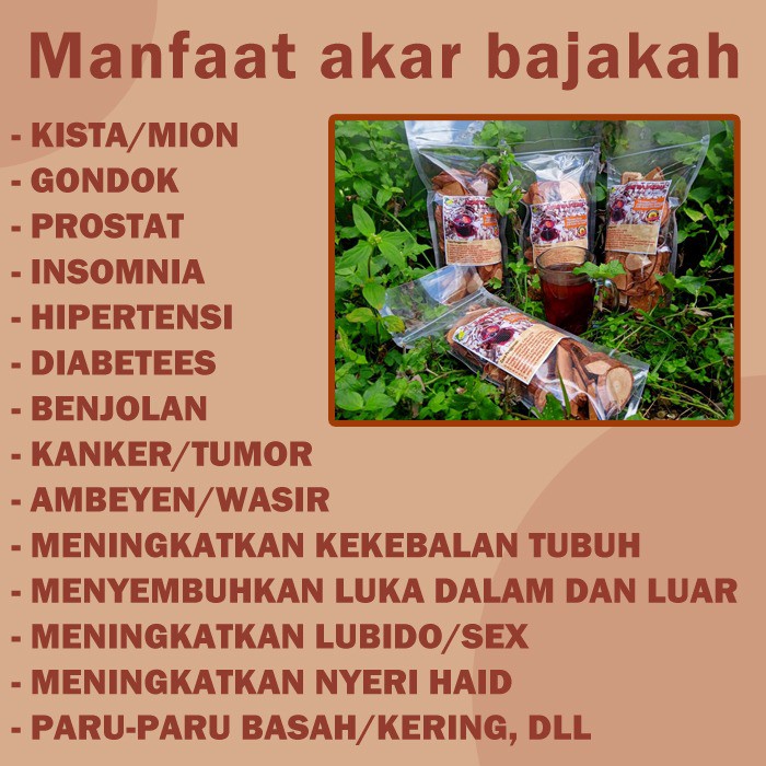 Anti inflamasi untuk meredakan peradangan pada organ tubuh. Manfaat akar bajakah yang utama adalah untuk membunuh sel kanker dan tumor bajakah juga telah lama digunakan oleh penduduk asli suku dayak untuk berbagai macam pengobatan. Kemudian akar dari kayu bajakah ini sangatlah kuat dan besar. Kami jual akar bajakah asli yang sudah dikeringkan kulit luar sudah dibersihkan serta sudah dipotong kecil kecil untuk memudahkan anda dalam proses pengolahan.