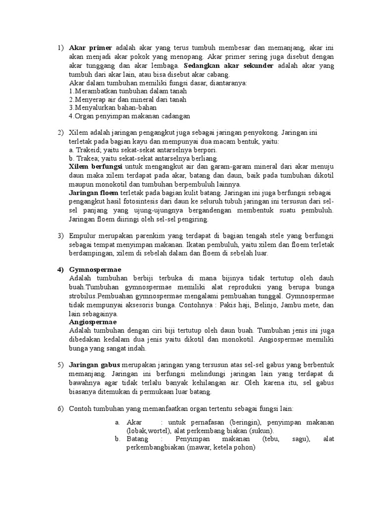 Akar Cabang Pada Tumbuhan Dikotil Dan Gymnospermae Disebut