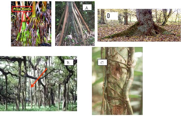 Pada umumnya daun berwarna hijau karena mengandung klorofil dan berfungsi sebagai penyerap energi dari cahaya matahari untuk proses fotosintesis. Struktur dan jaringan akar terdiri atas. Biasanya menggantung ke udara dan tumbuh di atas tanah bergantung pada tingginya tempat permukaan keluarnya akar. Kemudian pada ruang antar sel memilki peran seperti pertukaran gas dan penyimpanan untuk cadangan makanan.