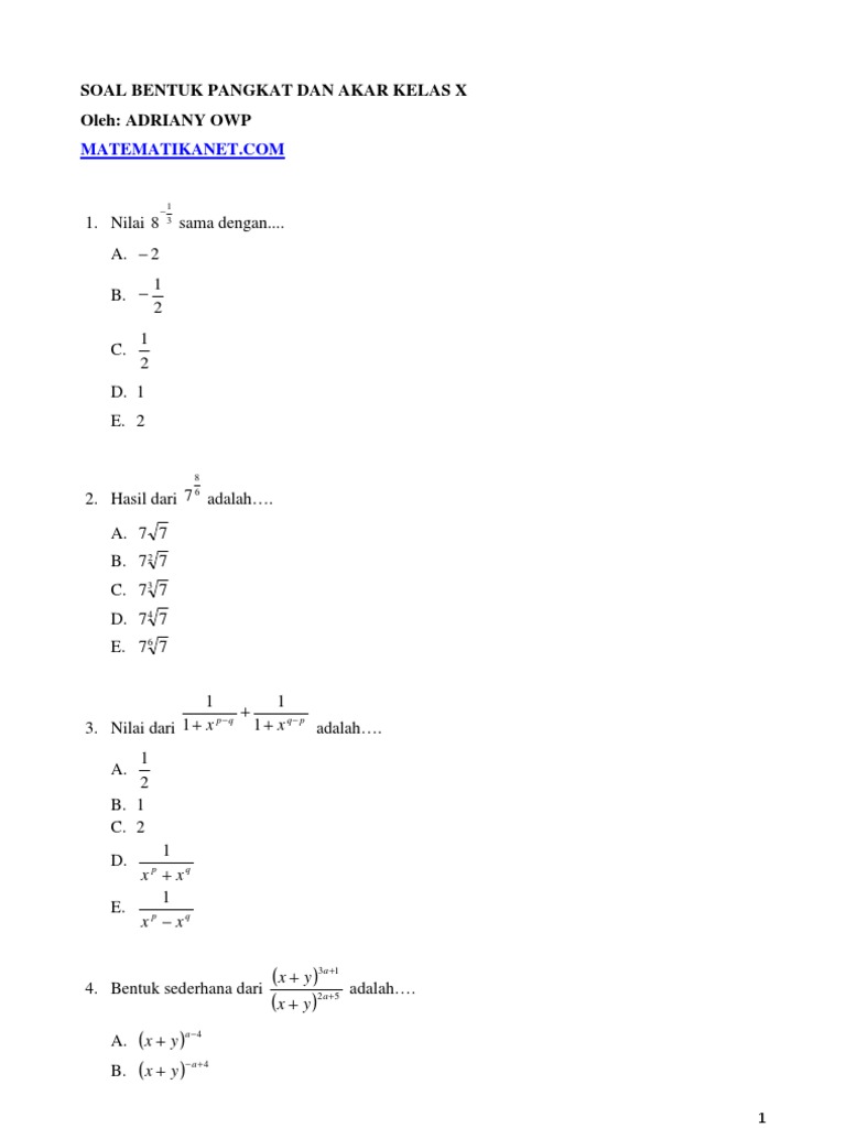 Bentuk pangkat dan akar 10 sma contoh soal dan pembahasan bentuk pangkat dan akar materi matematika kelas x sma. Dengan syarat akar akar tersebut memiliki hubungan atau relasi dengan akar akar dari pk yang lain. Di dalam matematika akar kuadrat dari bilangan x sama dengan bilangan r sedemikian sehingga r x atau di dalam perkataan lain bilangan r yang bila dikuadratkan sama dengan x. Tentukan nilai dari e.