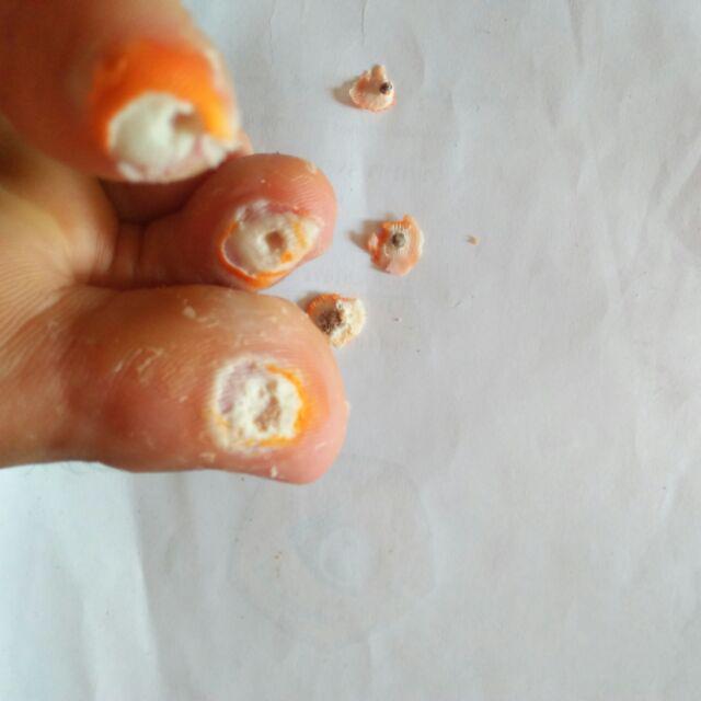 Soalnya mata ikan punya akar yang dalem banget di bawah kulit yang harus diambil sampai tuntas kalau nggak bisa beranak pinak dan. Tidak tanggung tanggung saya punya dua mata ikan satu di telapak kaki kiri dan satu lagi di kaki kanan. Ada yang hanya sebesar biji kacang hijau bahkan ada yang sebesar kelengkeng. Setelah kira kira 3 hari mata ikan akan rontok kaki akan kelihatan berlobang tapi tidak ada rasa sakit sama sekali.