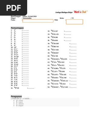 Akar kuadrat atau akar pangkat 2 adalah kebalikan dari operasi pangkat 2 atau invers pangkat 2 suatu bilangan. Tekan tombol hitung dan hasil kalkulasi akan ditampilkan secara otomatis. Berapa m panjang sisi tangki itu. 13 824 adalah 13 824 24 soal uraian 1.
