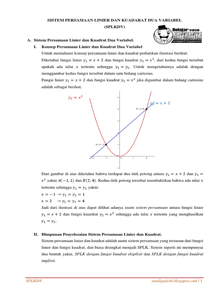 Dari ketiga jenis di atas dapat dipahami bahwa sebuah persamaan asal pangkat variabel tertinggi sama dengan dua meski koefisien. Jika d 0 maka persamaan kuadrat memiliki dua akar real yang berlainan. Sedangkan titik puncak minimum terdapat pada kurva yang terbuka ke atas. Salah satu cabang ilmunya yaitu pertidaksamaan.
