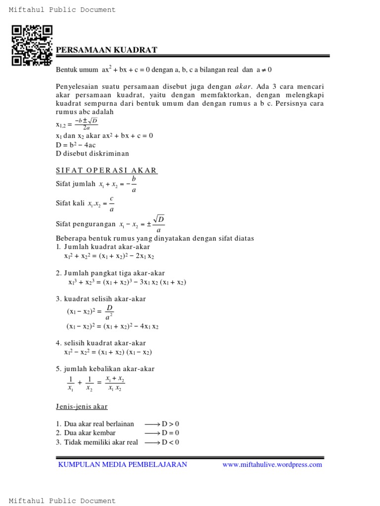Akar akar negatif persamaan kuadrat. Sifat yang dimaksud dalam akar persamaan kuadrat adalah akar positif negatif berbeda tanda berlawanan atau berkebalikan. Jika maka tidak mempunyai akar real. Akar akar rasional persamaan kuadrat.