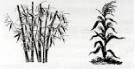 Sistem perakaran serabut terbentuk pada saat akar primer membentuk cabang sebanyak banyaknya. Bunga tebu adalah bunga majemuk yang tersusun atas malai dengan pertumbuhan terbatas. Daun jagung berbentuk seperti pita dengan ibu dan anak tulang daun membujur dari pangkal pelepah hingga ujung daunnya. Tanaman ini juga merupakan contoh daun sejajar.