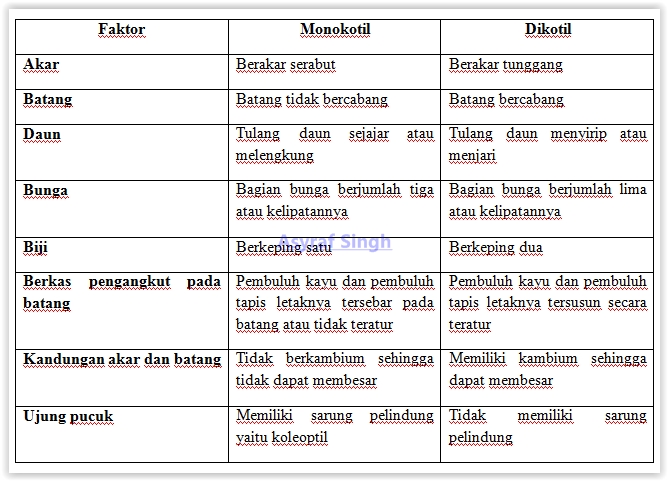 Akar serabut tulang daun sejajar biji berkeping satu ciri ciri dari tumbuhan. Pado tebu gandum dan alang alang. Selain bentuk pertulangan anatomi daun monokotil dan dikotil juga berbeda. Setiap bunga memiliki tiga daun kelopak satu daun mahkota tiga fungsi benang sari dan dua kepala putik. Kelompok ini diakui sebagai takson sebagai kelas maupun subkelas dalam berbagai sistem klasifikasi tumbuhan dan mendapat berbagai nama seperti monocotyledoneae liliopsida dan.
