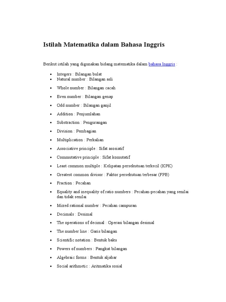 Semoga bermanfaat dan good luck ya. March 2 2016 at 12 08 pm delete. Matematika info istilah matematika dalam bahasa inggris. Berikut ini adalah 125 daftar istilah matematika dalam bahasa inggris dan artinya super lengkap yang dilengkapi juga dengan simbol dan cara membacanya.