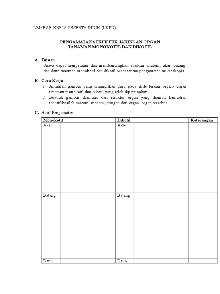 Bandingkan struktur anatomi akar monokotil dan dikotil. Sistem akar tersebut dinamakan akar tunggang. Epidermis korteks dan juga perisikel pada tumbuhan dikotil memiliki fungsi dan letak yang sama dengan tumbuhan monokotil. Struktur daun monokotil dan dikotil dengan melengkapi tabel berikut. Akar dikotil memiliki dua fase pertumbuhan yaitu fase pertumbuhan primer dan fase pertumbuhan sekunder.