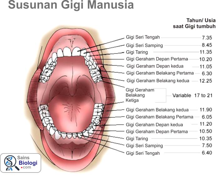 Pada gigi susu gigi seri akan muncul pada bayi usia 6 bulan. Selamat siang dok saya putri berumur 22 tahun 7 tahun yang lalu saya mencabut gigi geraham pertama saya sebelah kanan. Gigi geraham berjumlah delapan dan berfungsi untuk mengunyah dan menggiling makanan. Gigi geraham baik atas maupun bawah sama sama memiliki peranan penting untuk proses mengunyah makanan.