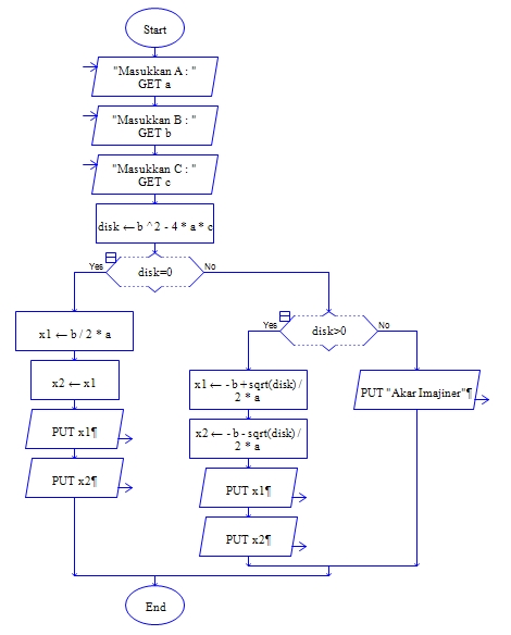 Algoritma flowchart akar akar persamaan kuadrat pr. Ketentuan yang harus dipenuhi yaitu. Jadi kalo kita lihat dari persamaan umum dari ax 2 bx c 0 maka pada bagian pangkat 2 itu adalah suku banyak. Flowchart untuk mencari jumlah dari dua fariabel.