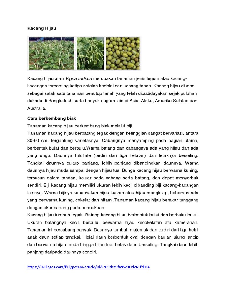 Bila dilihat dari kesesuaian iklim dan kondisi lahan yang dimiliki indonesia termasuk salah satu negara yang memiliki kesempatan untuk melakukan ekspor kacang purwono dan hartono 2005. Morfologi tanaman kacang hijau 1. Kacang hijau mengandung protein nabati yang sangat tinggi. Ciri ciri dan habitat kacang hijau kacang hijau adalah tanaman palawija yang memiliki nama ilmiah vigna radiata.