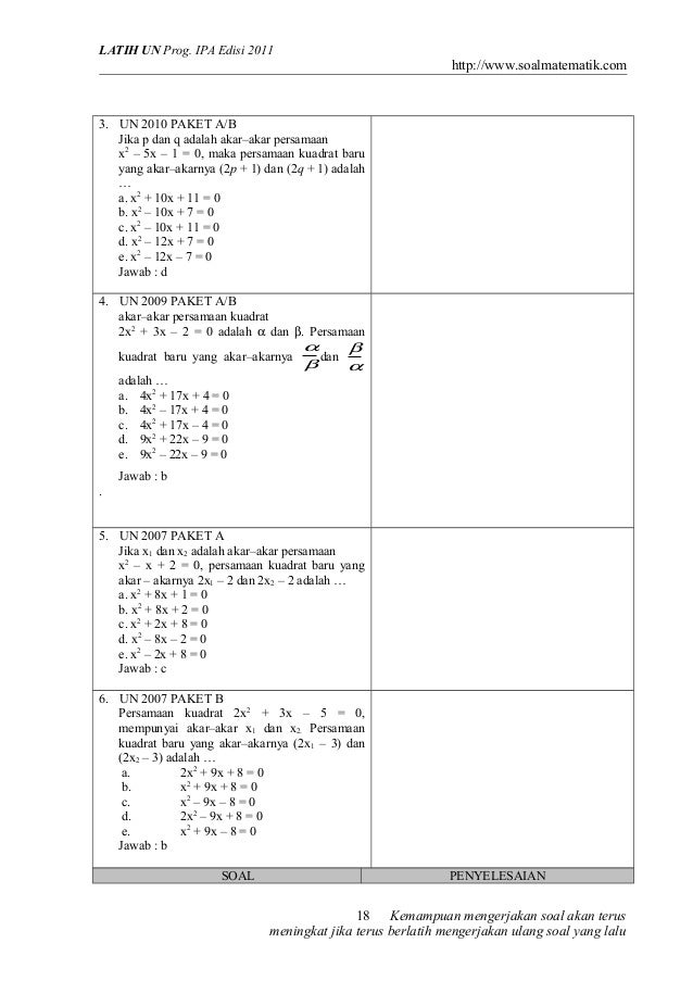 Jika p dan q adalah akar akar persamaan x 5x 1 0 tentukan persamaan kuadrat baru yang akar akarnya 2p 1 dan 2q 1. Suatu persamaan kuadrat memiliki akar akar p dan q. 1 x 12 2 x 6 3 x 4 1 x 12 2 x 6 3 x 4. Jika model pk sudah diketahui maka pemfaktoran bisa dilakukan dalam bentuk sesuai dengan yang ada di kolom tabel di atas.