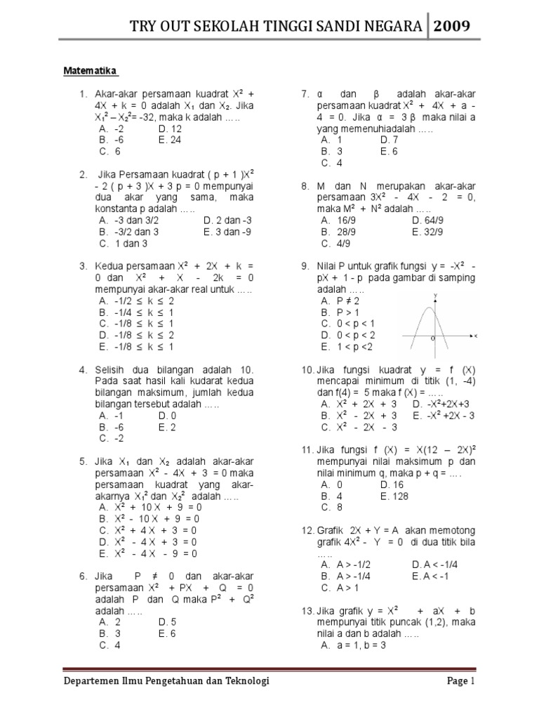 B 1 d. Langkah pertama yang harus kita lakukan adalah mensubstitusikan nilai x 1 ke persamaan. Dengan menggunakan rumus akar akar akar persamaan kuadrat ax 2 bx c 0 adalah sebagai berikut. Apabila akar akar dari persamaan x 2 bx c 0 yaitu 1 dan 3 maka nilai b yang memenuhi persamaan itu ialah.