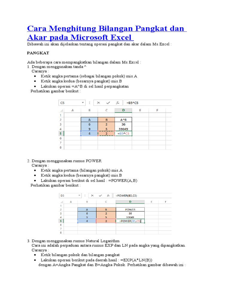 Untuk menghitung kuadrat pangkat dan akar pangkat tidak memakai fungsi microsoft excel. Rumus excel bisa. Adapun rumus rumus yang harus diisi pada kolom c adalah sebagai berikut. Bilangan pangkat misalnya power 2 3 dibaca sebagai 2 x 2 x 2 dan hasil akhirnya 8.