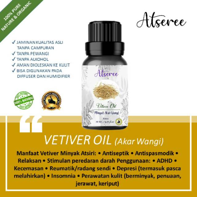 Menghilangkan waswas depresi capek insomnia. Jual beli online aman dan nyaman hanya di tokopedia. Vetiver essential oil minyak akar wangi bersifat non toksik non iritan dan non sensitisasi. Minyak akar wangi adalah minyak atsiri yang kental dan memiliki aroma sweet earthy dan woody martinez et al 2004.