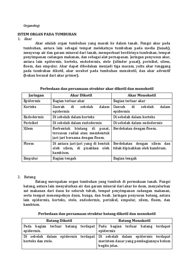 Pada akar tumbuhan dikotil di antara xilem dan floem terdapat. Akar tungang adalah akar primer atau akar lembaga yang terus tumbuh. Pada batang tumbuhan dikotil jaringan pembuluh membentuk lingkaran yang terletak di antara korteks dan empulur. Tak terkecuali dengan tumbuhan tumbuhan juga terdiri dari beberapa organ seperti akar batang daun bunga buah dan biji. Pada akar letak xilem berselang seling dengan floem sedangkan pada batang floem terletak di sebelah.