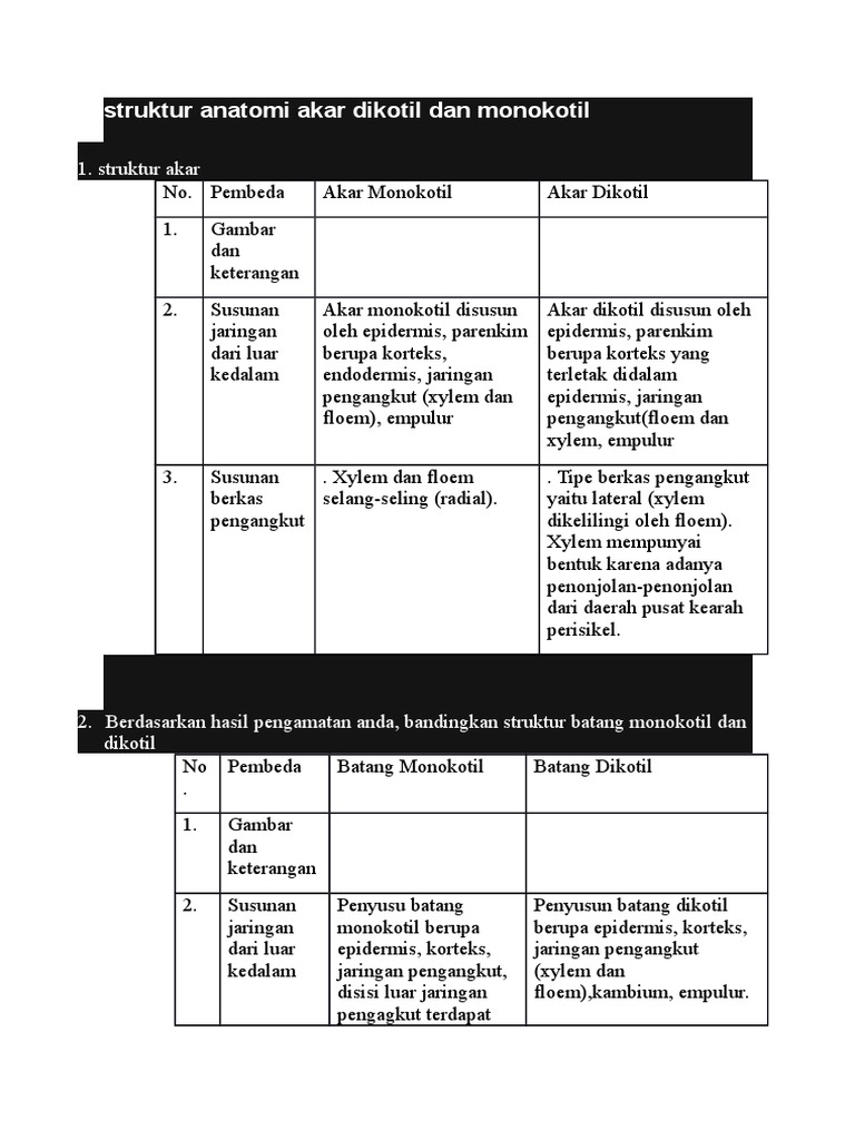 Tabel Perbedaan Struktur Akar Tumbuhan Dikotil Dan Monokotil