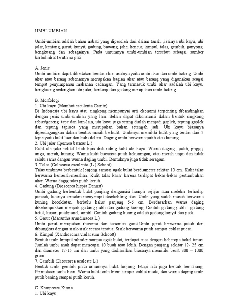 Umbi umbi merupakan salah satu tanaman yang banyak digunakan sebagai bahan pangan.